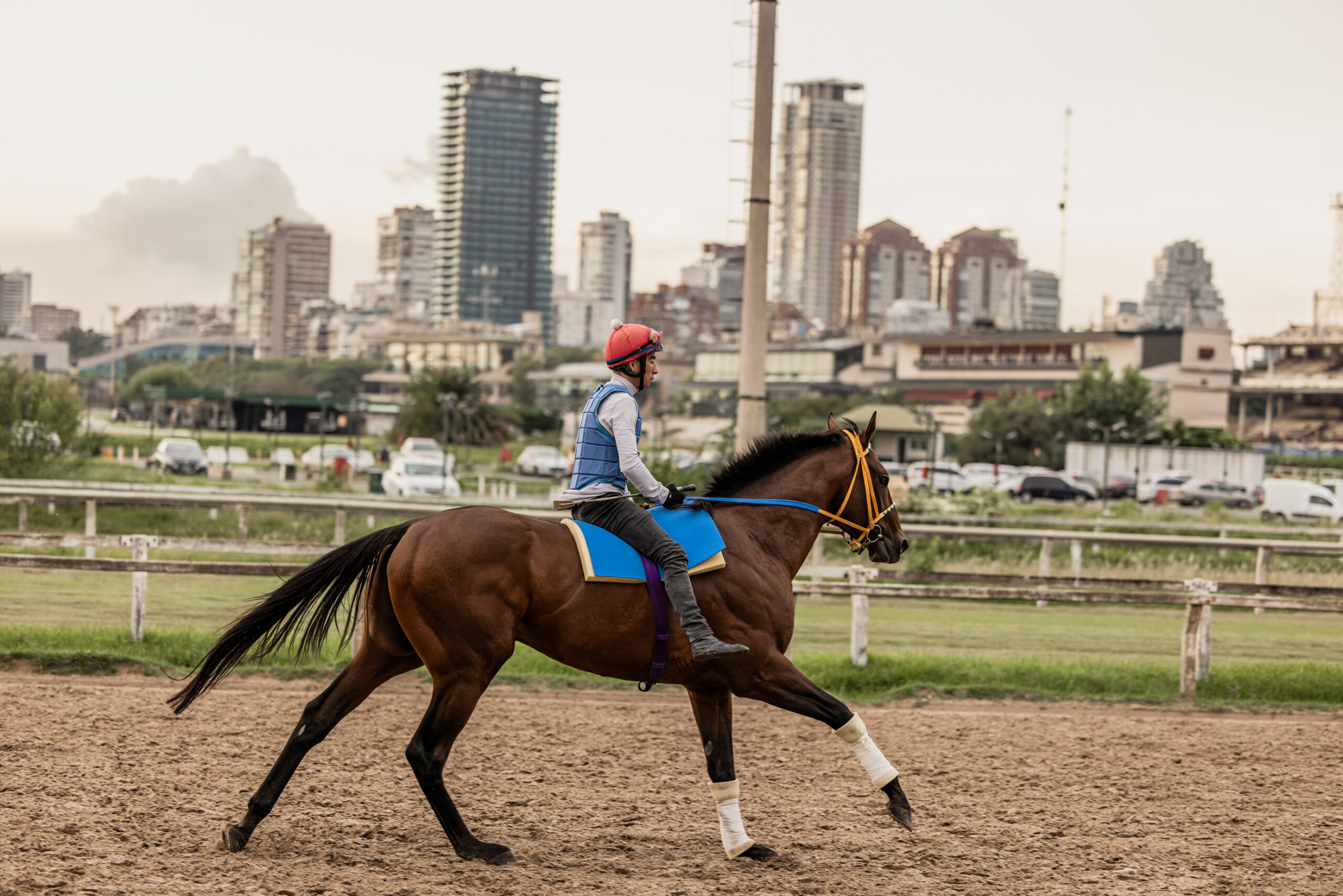 Pferdefotografin Michèle Forster weilt im Winterhalbjahr regelmässig für Foto- und Kunstprojekte in Südamerika. Da sie früher Amateurrennreiterin war, heute noch mehrmals pro Woche in der Morgenarbeit bei Galopptrainer Josef Stadelmann in Dielsdorf reitet und zudem als Fotografin auf den Deutschschweizer Rennbahnen tätig ist, fotografiert sie jeweils auch Rennen in Buenos Aires. Über die Jahre sind viele lokale Kontakte entstanden, die es ihr im Frühling 2025 ermöglichten, nicht nur die Rennen zu besuchen, sondern mit dem örtlichen Tierarzt Lucas hinter die Kulissen zu schauen und ihn in die Stallungen und ins Training zu begleiten.