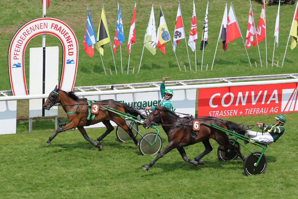 Ein Renntag, wie er im Buche steht: Der Rennverein Frauenfeld (RVF) darf sich über gelungene Rennen am Pfingstmontag freuen. Die Pferde, Ponys und ihre Reiter:innen beziehungsweise Fahrer:innen zeigten spannenden Sport, das Rahmenprogramm mit dem 18. Gemeinde Cup der Regio Frauenfeld sowie zwei Vorführungen der Traingesellschaft Nord-, Ost und Zentralschweiz (TGNOZ) kamen gut an und das Publikum strömte gut gelaunt auf die Bahn. 12’500 Besucher:innen zählte der RVF. An den Wettschaltern wurden rund 114’000 Franken umgesetzt.