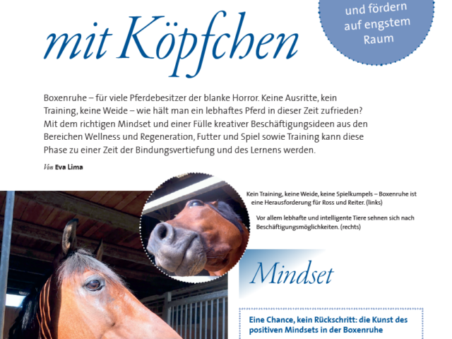 Aus “Kavallo” 11/23: Verwöhnen, Lernen und Fördern auf engstem Raum. Boxenruhe – für viele Pferdebesitzer der blanke Horror. Keine Ausritte, kein Training, keine Weide – wie hält man ein lebhaftes Pferd in …