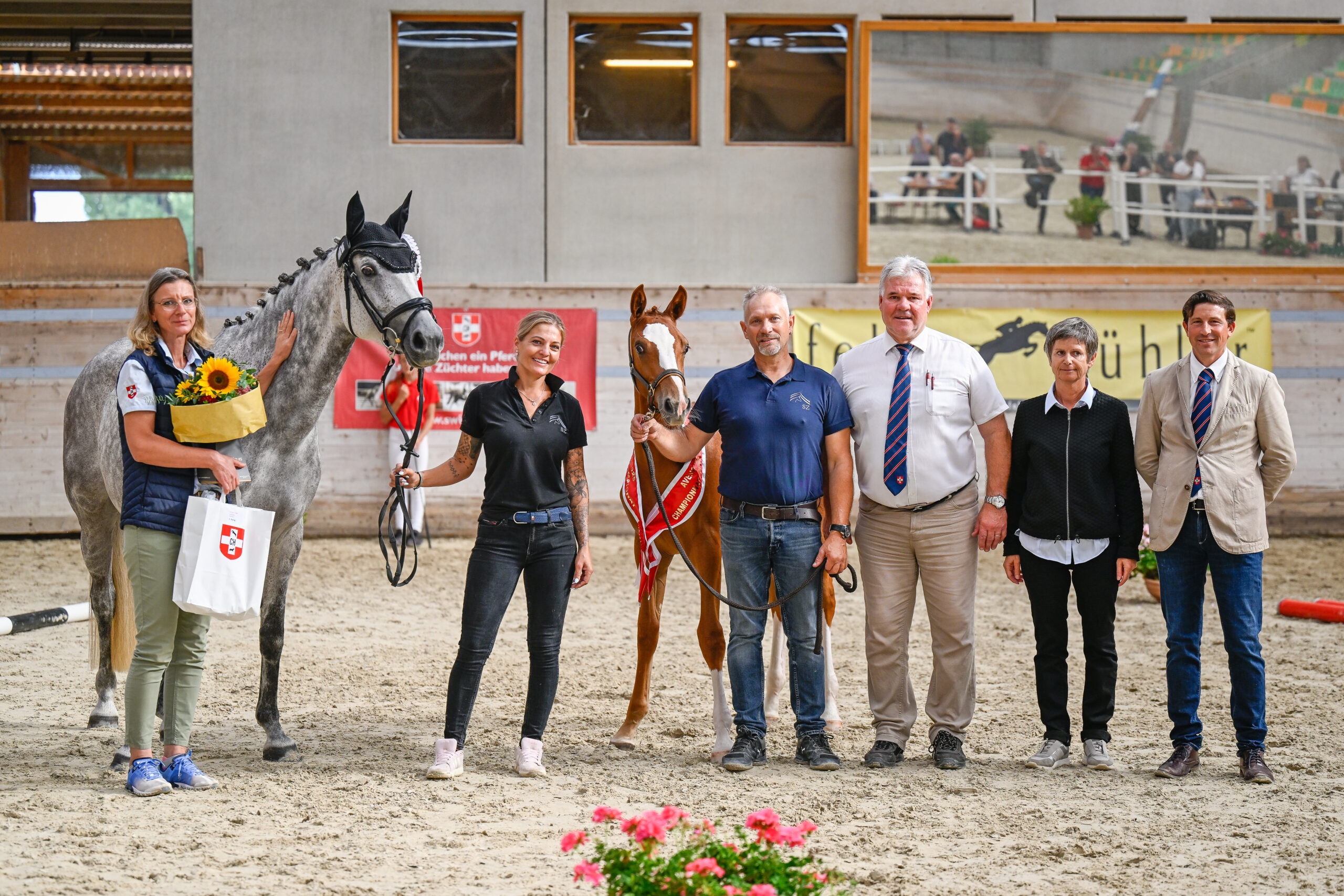 Bei den Hengstfohlen schliesslich begeisterte Fusaichi Totalis CH (Fürst Toto – Livia – Livaldon). Der schicke, leichtfüssige Dunkelfuchs aus der Zucht von Julia Zhu und im Besitz der Züchterin und ihrem Mann, ZVCH-Präsident Christoph Neuhaus erreichte hohe 286 Punkte. Hinter ihm auf Platz zwei und 283 Punkten folgte Alestro von Stichbach (Asagao xx – Destiny von Worrenberg – Destano) ein gelungenes Fohlen das durch seines Papa, Vollblüter Asagao xx, bestimmt einen Weg in Richtung CC-Sport einschlagen könnte – vielleicht mit seiner Züchterin Maja Singer-Flück, die ebenfalls im CC-Sport aktiv ist. Auf Platz drei schliesslich folgte Glamour ZS CH (Glamourdale – Joli Coeur ZS –Johnson) aus der bewährten Zucht von Claudia Schwendener und Thomas Schneider, im Besitz von Anne-Lise Sandoz.