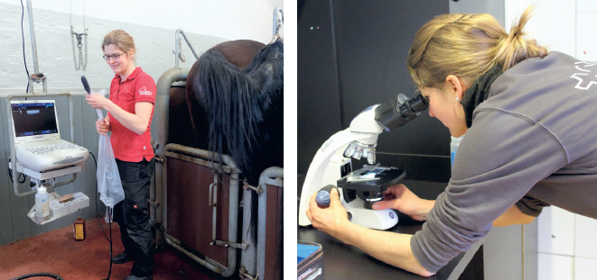 Schon währen des Studiums habe ich mich sehr für die Pferde-Reproduktion interessiert und habe dann zuerst in Avenches meine ersten Schritte in der Reproduktionsmedizin machen dürfen. Nach zwei Jahren in Avenches führte mich mein Weg zur Fachärztin FVH für Pferde an die ISME-Klinik in Bern (Tierspital), wo ich ebenfalls während zwei Jahren tätig war. Nach Abschluss meiner Facharztprüfung im Herbst 2016, führte mich mein Weg anfangs 2017 ans NPZ. 2018 bot sich mir dann die Chance, die Reproduktionsstation übernehmen zu können. Im Jahr darauf habe ich die Leitung der Reproduktionsstation übernommen. Mein Vorgänger, Stefan Bettschen, hatte diese Funktion über 15 Jahre lang ausgeführt und vorangetrieben.