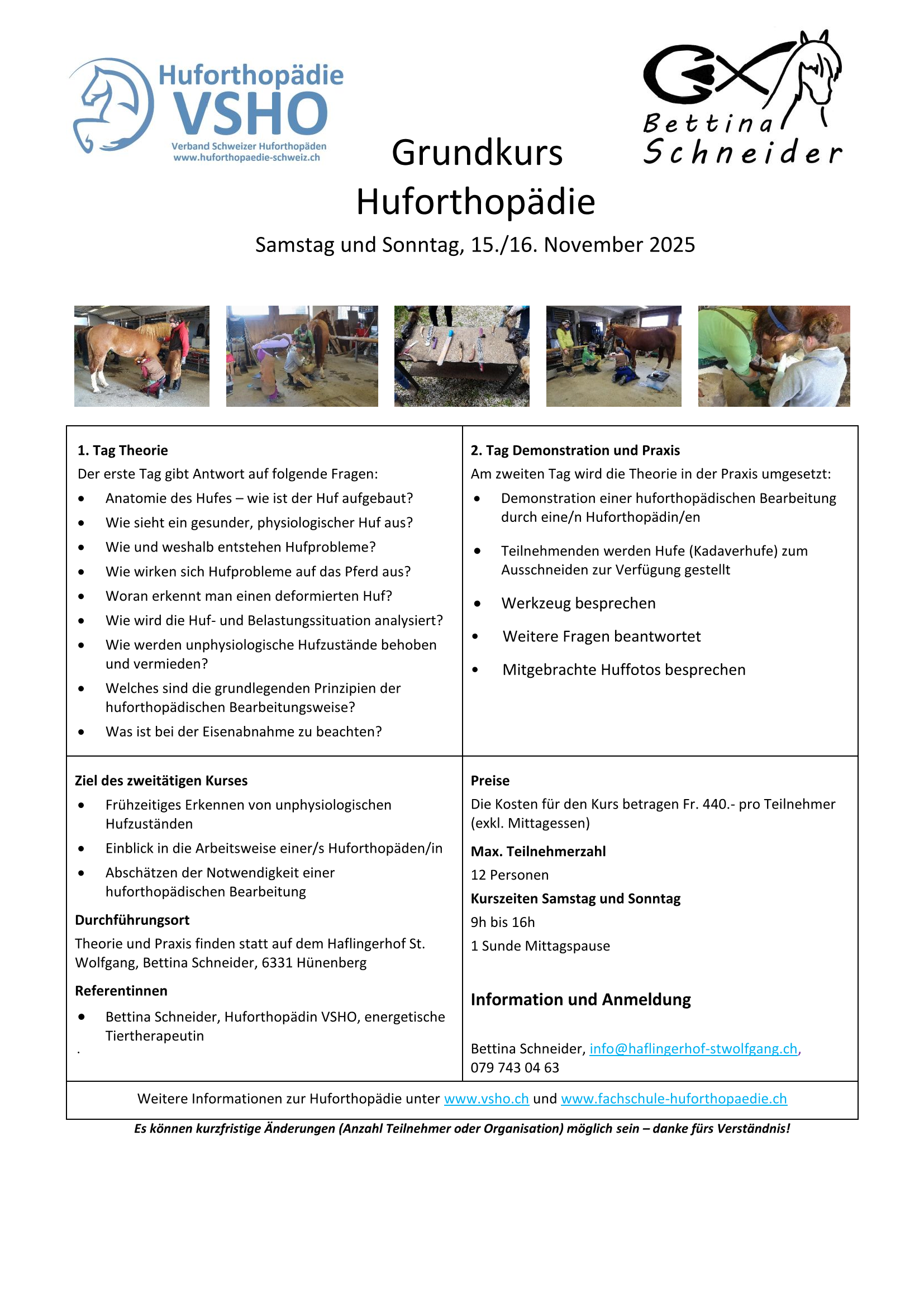 Der erste Tag ist geballt mit interessanten Antworten auf die Fragen: Wie ist der Huf aufgebaut? Wie sieht ein gesunder Huf aus? Wie und weshalb entstehen Hufprobleme? Was ist bei …
